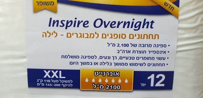 תחתונים סופגים למבוגרים של חברת אינספייר, תוצרת ארה"ב.