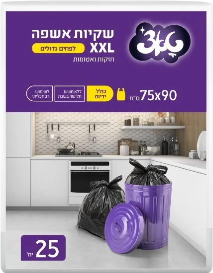שקיות אשפה עבות וגדולות 90*75 טאצ 25 יח'